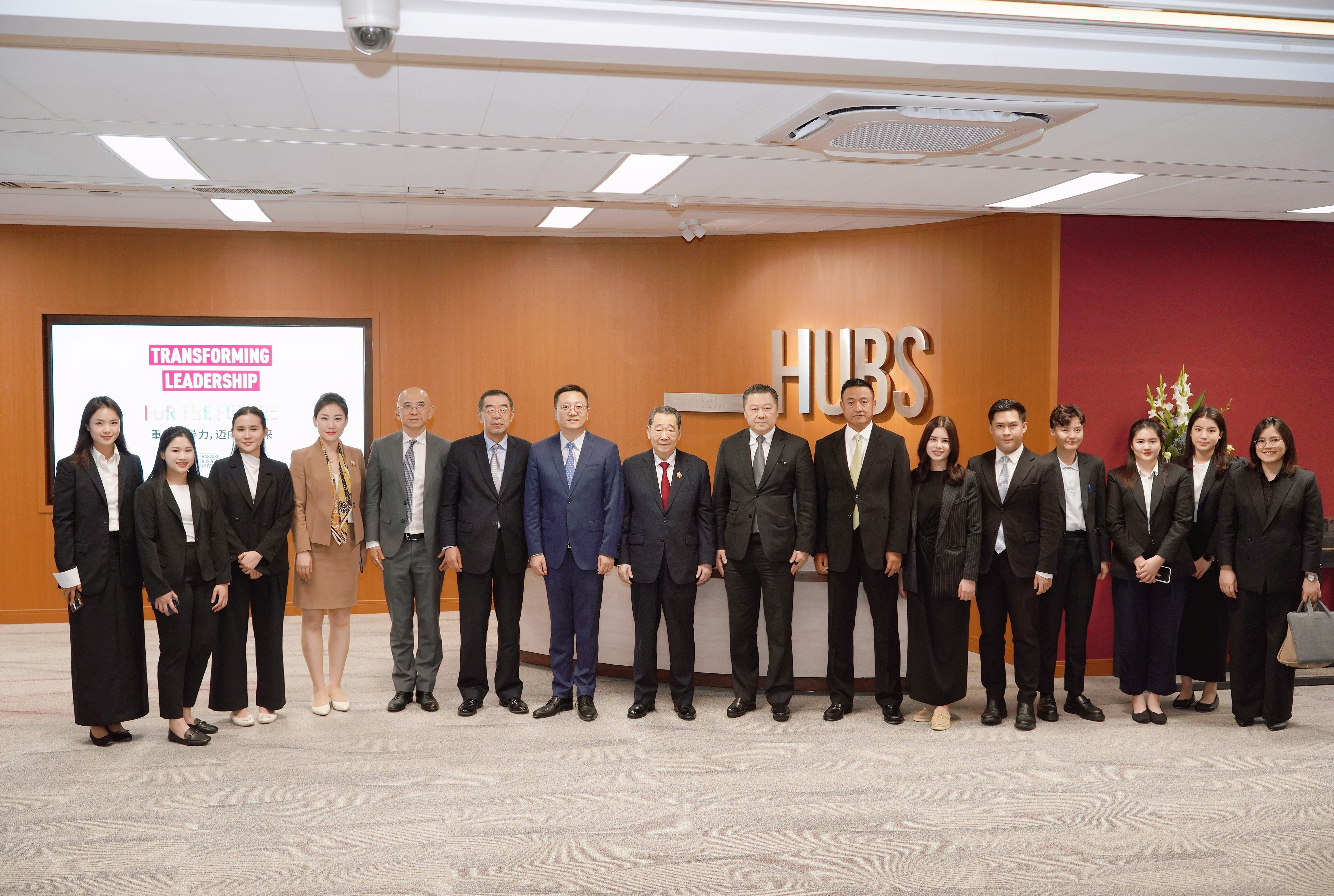 ▲谢国民集团资深董事长(左八)、谢吉人集团董事长(右八)、杨小平集团资深副董事长兼中国区CEO(右七)、谢毅集团资深副董事长(左六)与北京哈商教育科技有限公司CEO李梁梁(左七)等合影留念。