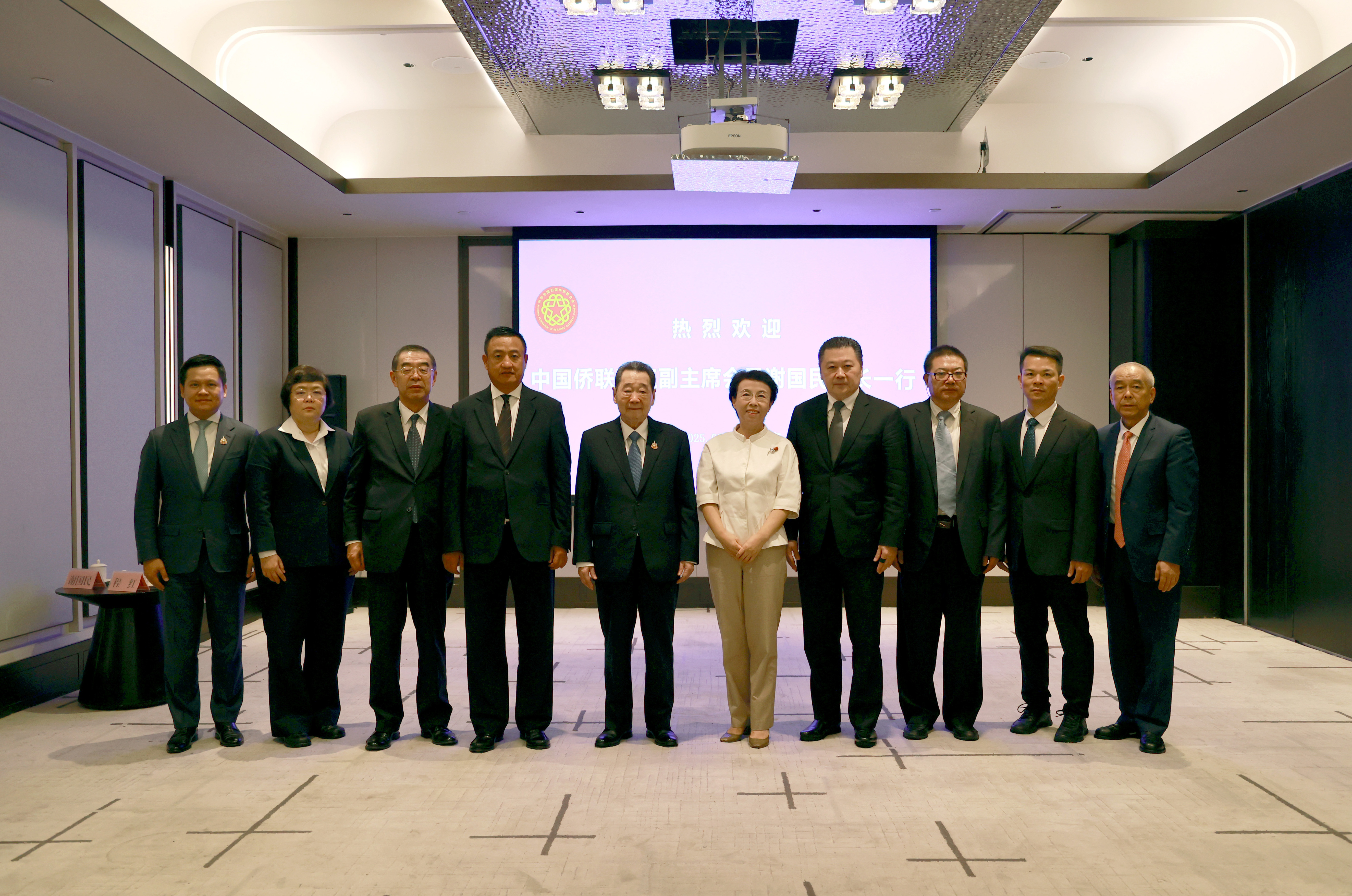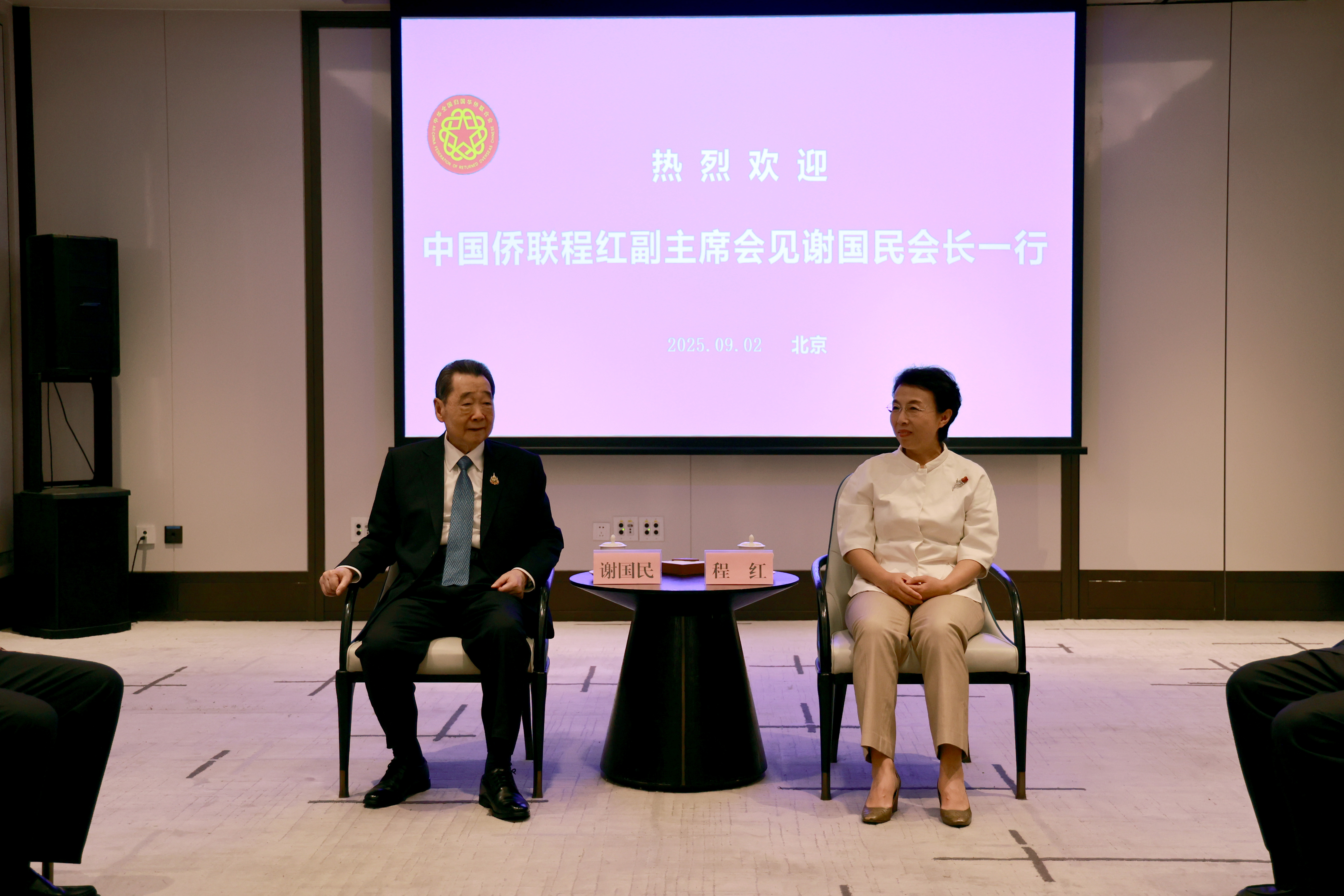 9月2日上午,中国侨联副主席程红在北京华侨大厦会见谢国民集团资深董事长、谢吉人集团董事长一行,双方举行了亲切友好的会谈。当天上午,谢吉人集团董事长还应邀参加了在京召开的中华海外联谊会六届二次常务理事会。