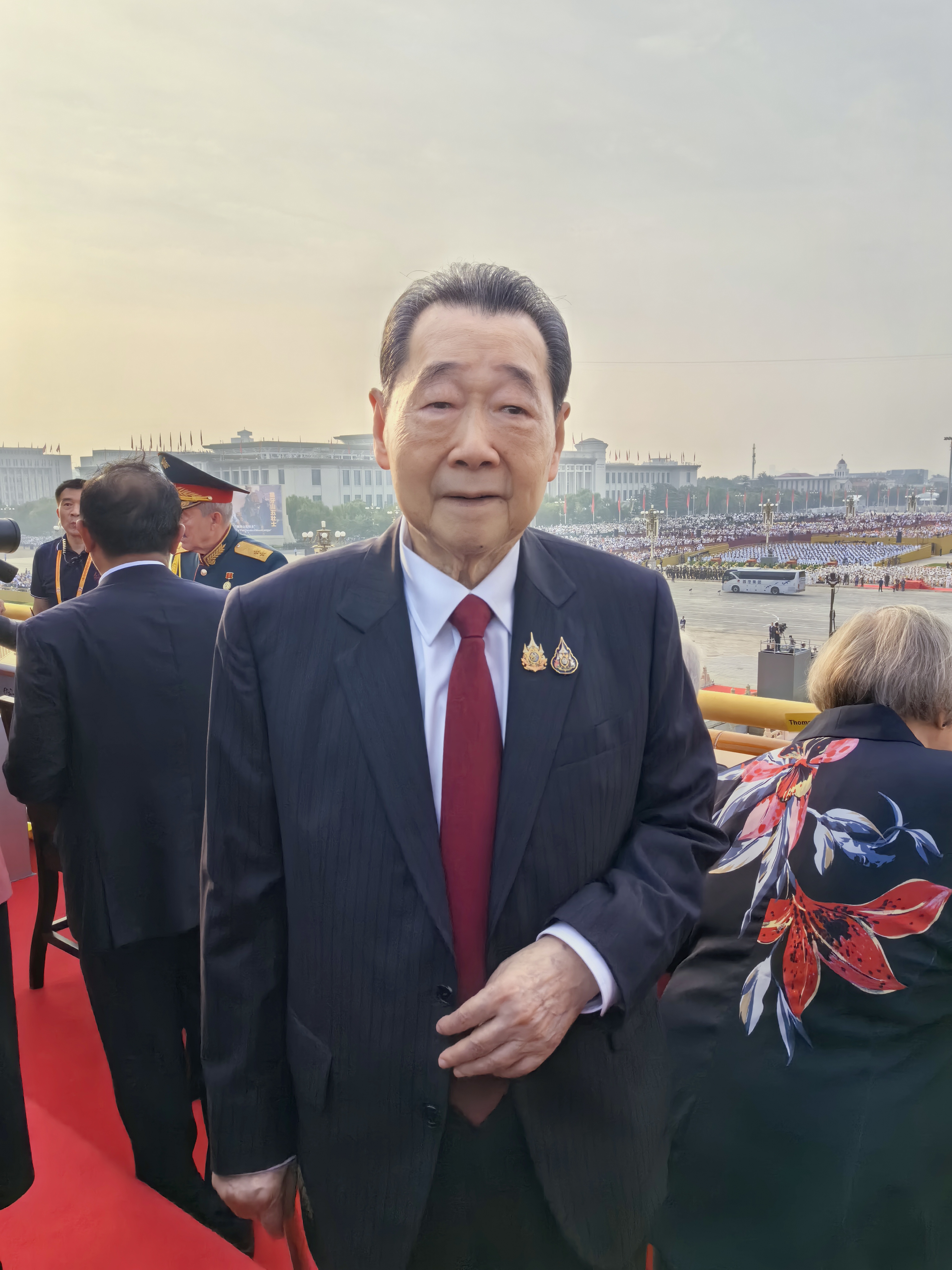 这已是谢国民集团资深董事长第三次登上天安门城楼观礼阅兵。早在2015年和2019年,谢国民集团资深董事长就非常荣幸地参加了纪念中国人民抗日战争暨世界反法西斯战争胜利70周年大会,和庆祝中华人民共和国成立70周年大会,并在天安门城楼观礼盛大阅兵活动。