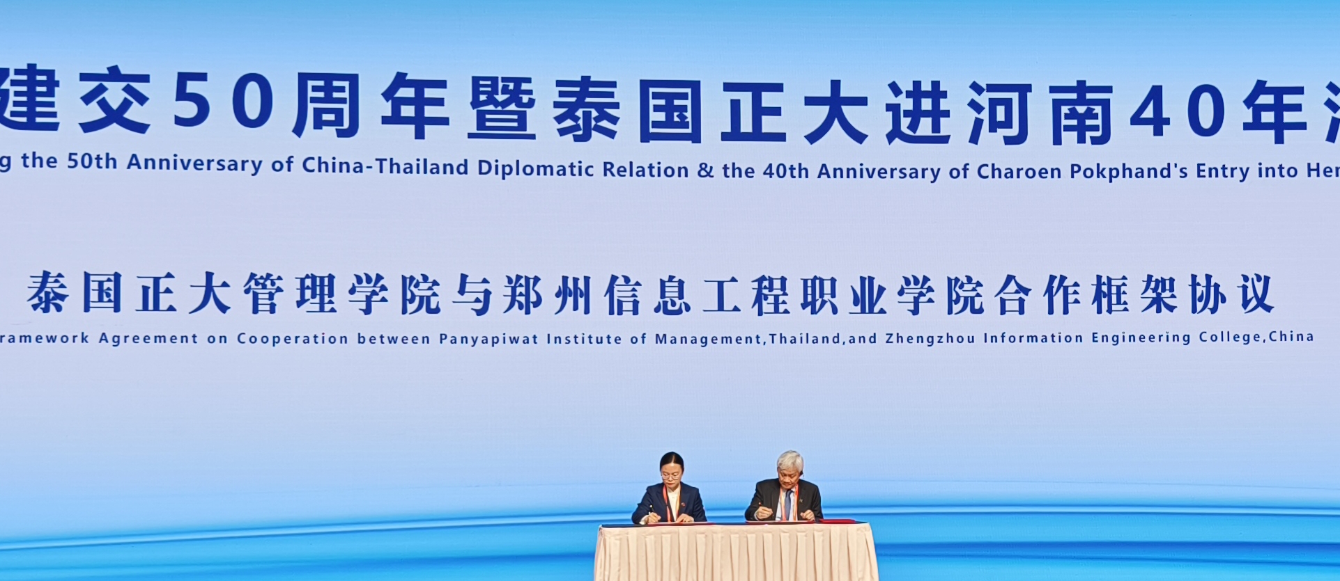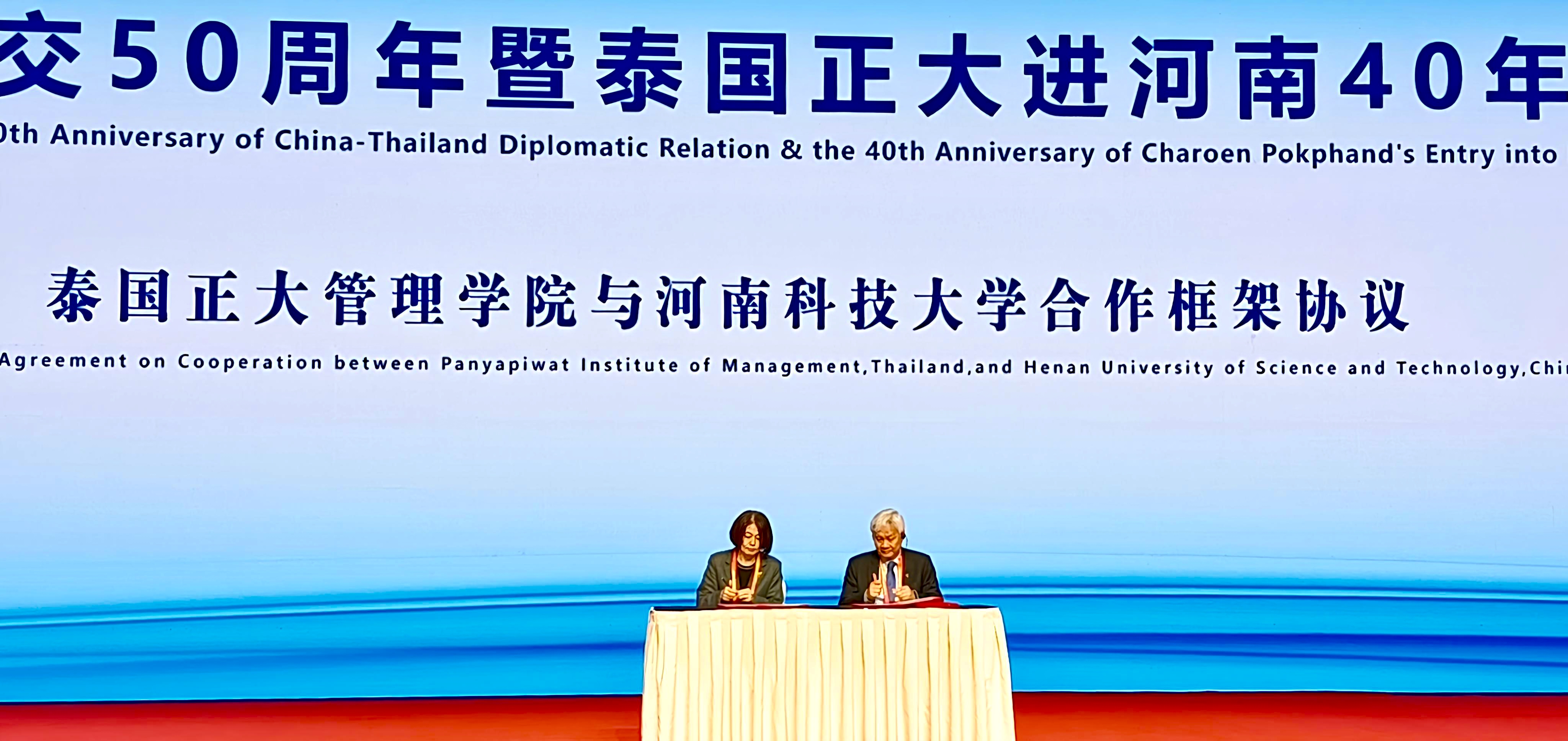 ▲泰国正大管理学院分别与河南科技大学、郑州信息工程职业学院签署合作框架协议。